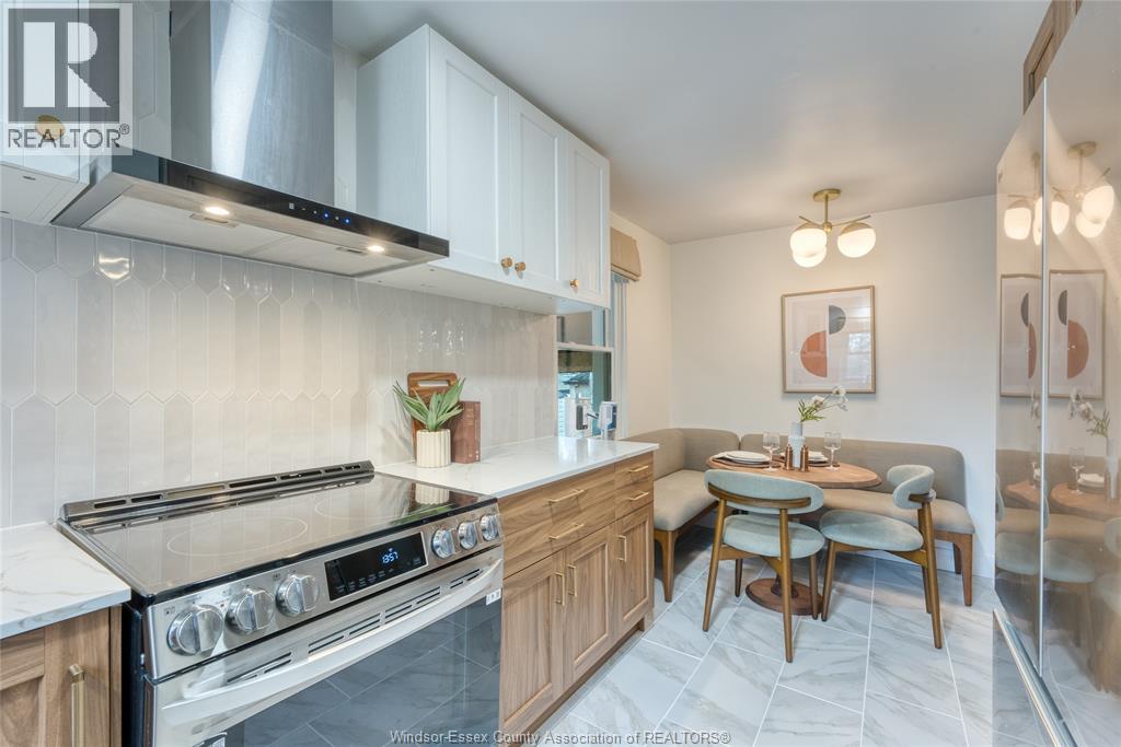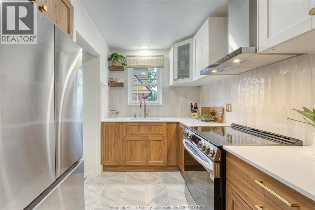 Just steps away from South Walkerville's Lincoln in the Woods area and Optimist Park, this very charming one and a half story home has trendy updates and high-quality workmanship throughout. Walking through the door you will be invited with a bright and spacious living room w/ original hardwood floors and a brand-new kitchen with modern walnut coloured cabinetry, high end quartz countertops, stainless steel appliances and a perfectly fitted Article corner banquette in the dining area. Perfect for a first-time home buyer, retiree or family, the main level also features two main sleeping spaces as well as a full bathroom. Making this a three-bedroom home is the serene primary bedroom in the loft includes a 2-plece bathroom in addition to the two renovated full bathrooms as well as a large walk-in closet with beautiful natural light. A bonus, a fully finished basement makes this property one of the largest in its class. Upgraded lighting, fixtures and paint is seen throughout. The lower level offers a spacious family room area with an additional full bathroom w/ tiled shower and glass door as well as ample storage and a spacious laundry and mechanical area. This turn key property, structurally sound home also brings a well-maintained yard, a tree filled lot and one of the city's most sought after nelghbourhoods and school districts. (id:4555)